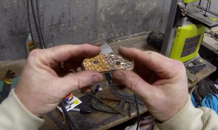 Once the copper is peened mark and cut out a piece for each half of the knife handle.