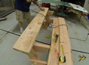 DIY Convertible Picnic Table that folds into bench seats. This video shows just how easy it is to make your own folding picnic table wood working project. We used standard 2x6 and 2x8 lumber, screws and 3/8 bolts to build this beautiful picnic table for a total cost under $150 including paint.